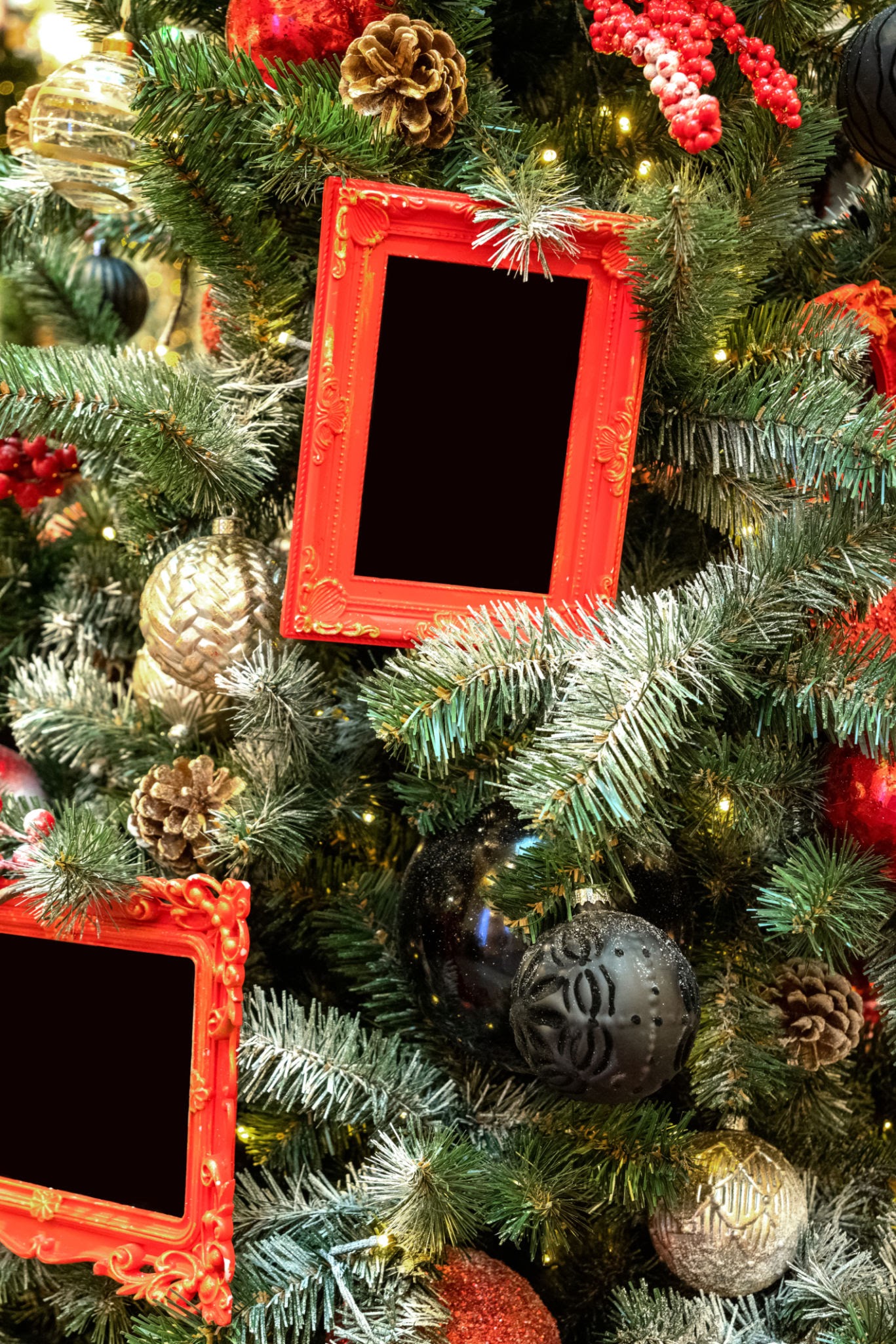 Bạn có thể lồng ảnh gia đình, những khoảnh khắc đáng yêu của thú cưng, hay là những hình ảnh phong cảnh mùa đông. Sự kết hợp giữa vẻ đẹp truyền thống của cây thông và nét hiện đại của những khung ảnh sẽ tạo nên một điểm nhấn vô cùng đặc biệt.