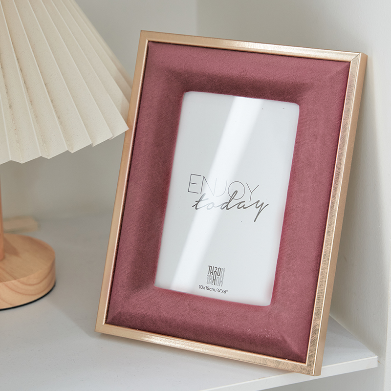 Khung Ảnh Để Bàn 10×15 Cao Cấp, Mặt Kính – Viền Vải Nhung Hồng Hàn Quốc – Tặng In Ảnh Miễn Phí