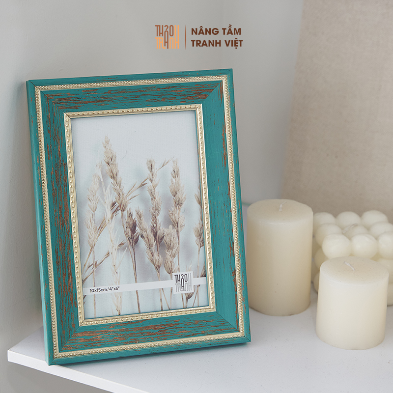 Khung Hình Để Bàn 10×15 Cao Cấp, Mặt Kính – Viền Xanh Cổ Điển – Tặng Kèm In Ảnh – TT003